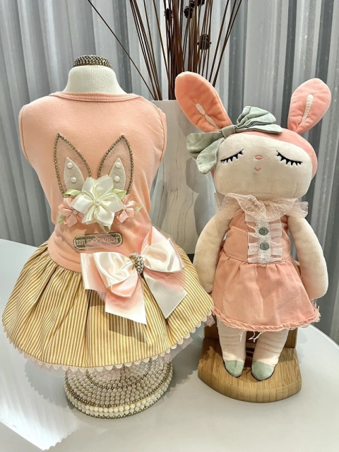 - > Vestido Salmão Páscoa Listra Salmão para cachorro e gato